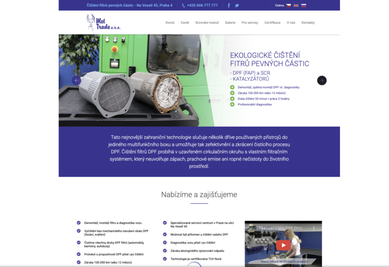 Webové stránky prezentující služby čištění DPF filtrů pro vozidla všech značek.