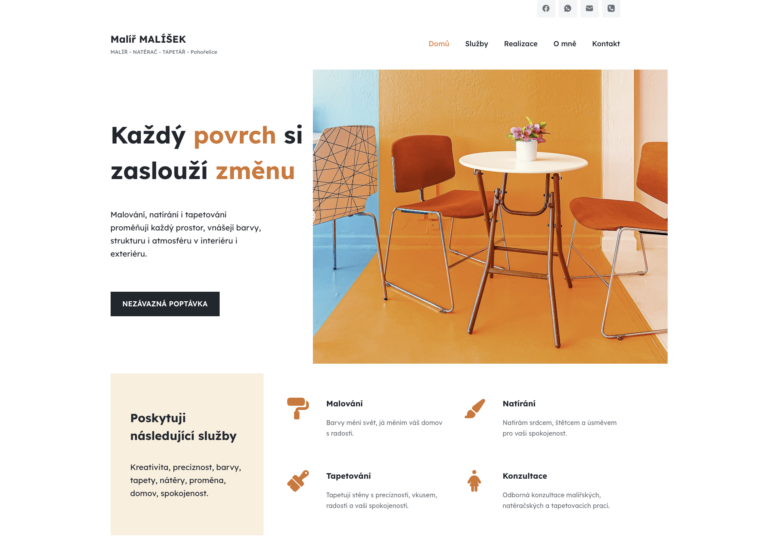 Webová stránka nabízející služby malířského mistra včetně natírání interiérů i exteriérů.